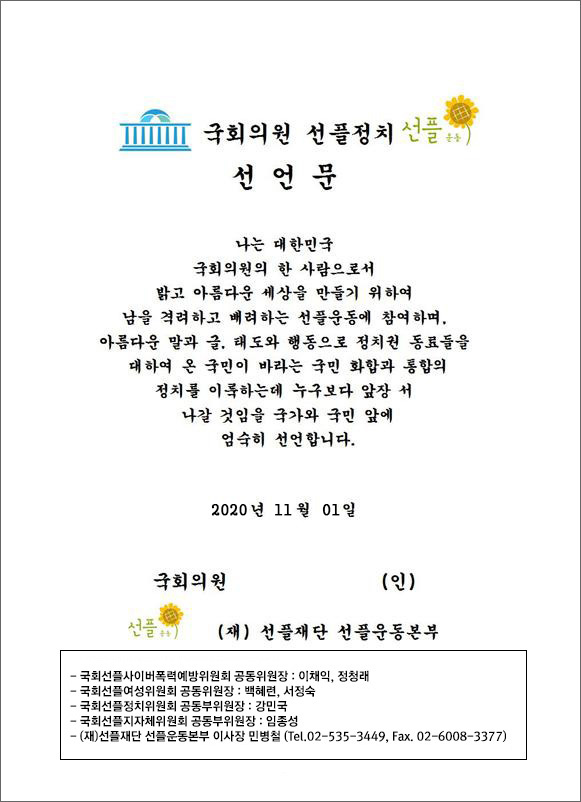 21대 선플서명 국회의원 명단 (가나다순)19·20대 기서명의원 포함, 2022. 09. 01 현재, 299명중 299명 (100%) 서명
